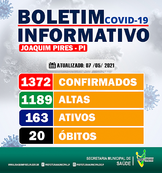 Boletim COVID - 19, desta sexta-feira, dia 07 de maio