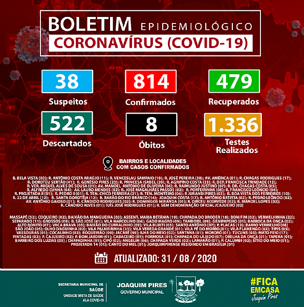 Boletim desta segunda-feira, 31 de agosto.