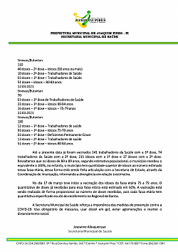 destaca abaixo, informações sobre o andamento da Vacinação no município.