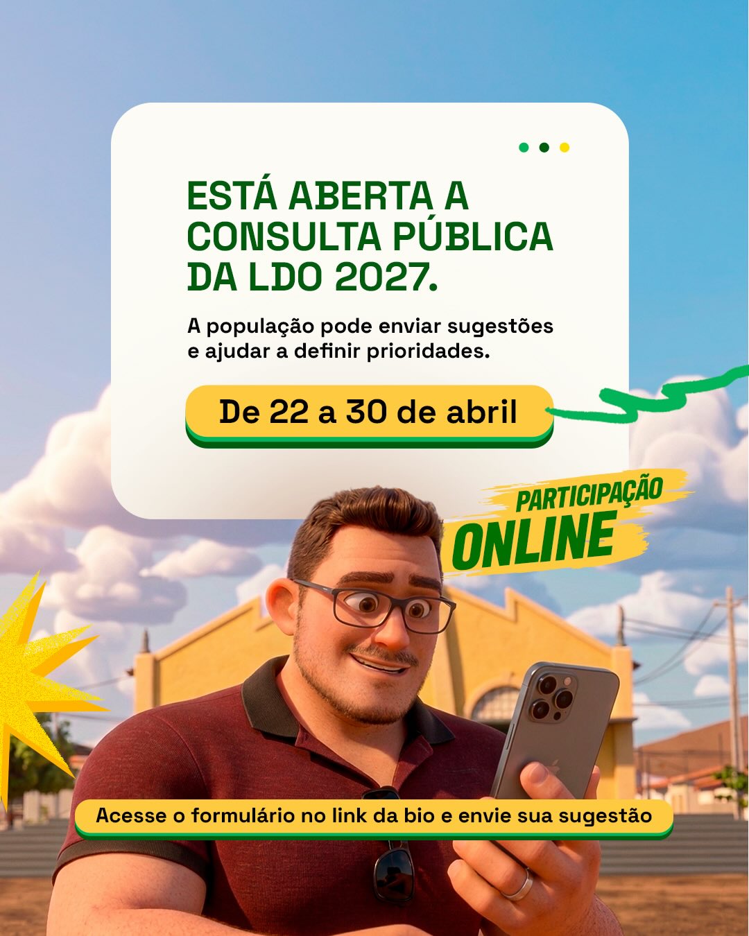 Leia +A Prefeitura de Joaquim Pires está com a consulta pública aberta para a elaboração da Lei de Diretrizes Orçamentárias (LDO) 2027. A in...