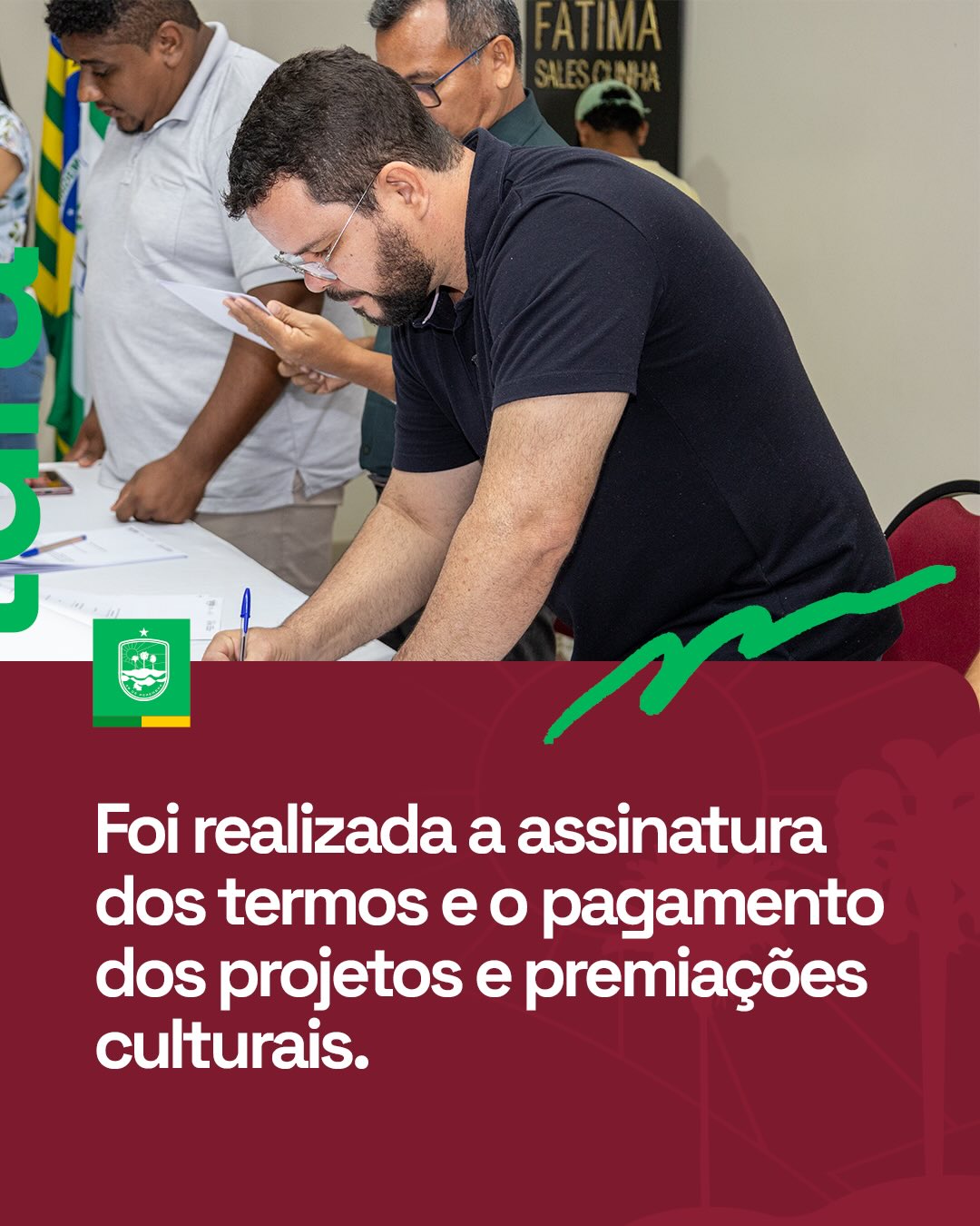 Municipal de Cultura e Turismo, realizou a cerimônia de pagamento e assinatura