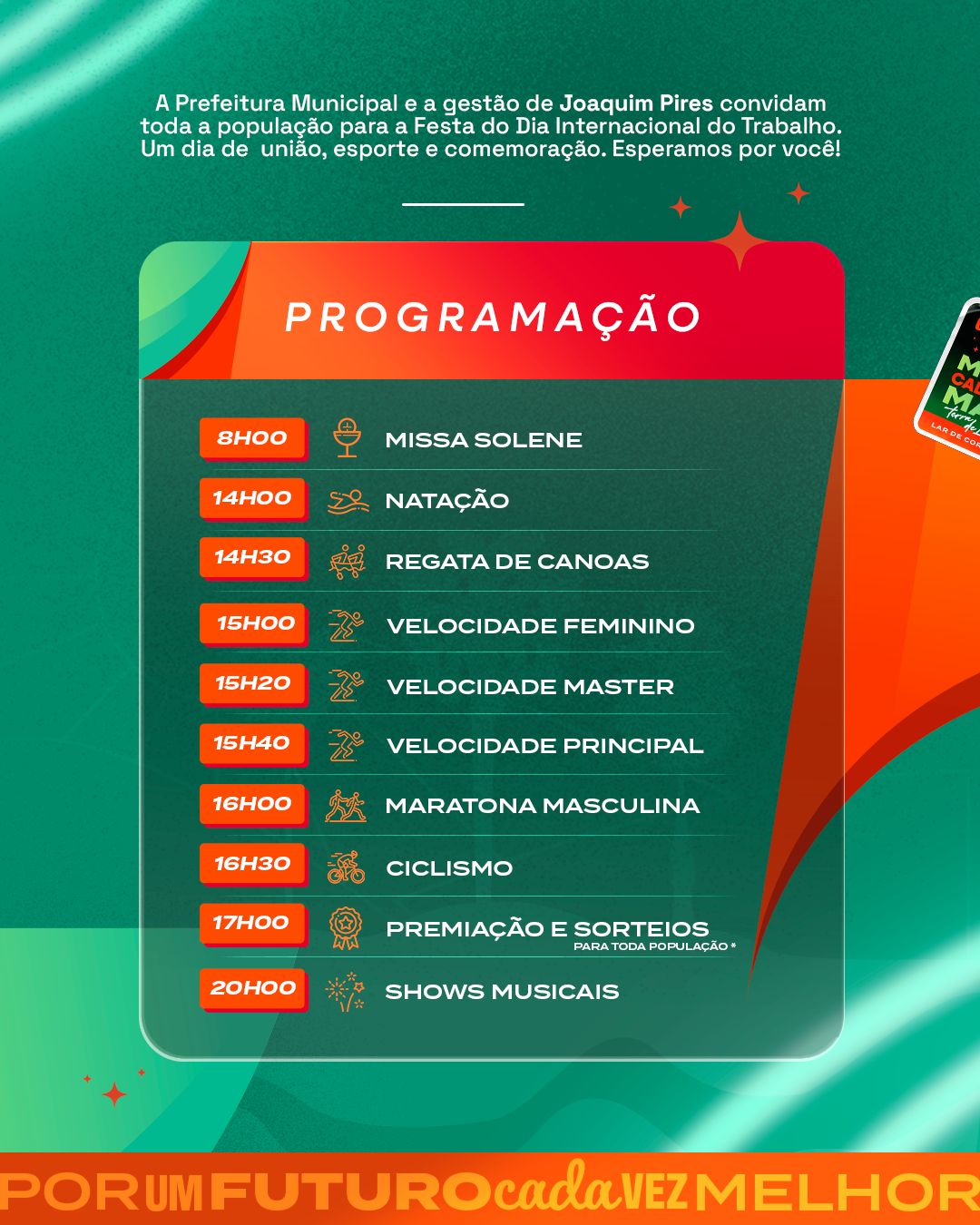 O 1º DE MAIO EM JOAQUIM PIRES JÁ TEM HORA, LUGAR E MOTIVO PRA VOCÊ ESTAR LÁ